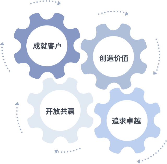 成就客户是一切决策的出发点,创造价值是衡量所有工作的标准,追求卓越是AG旗舰厅做事做人的态度,开放共赢是AG旗舰厅的格局也是最终的结果。价值观的齿轮环环相扣,推动着组织里的每个人不断向前。